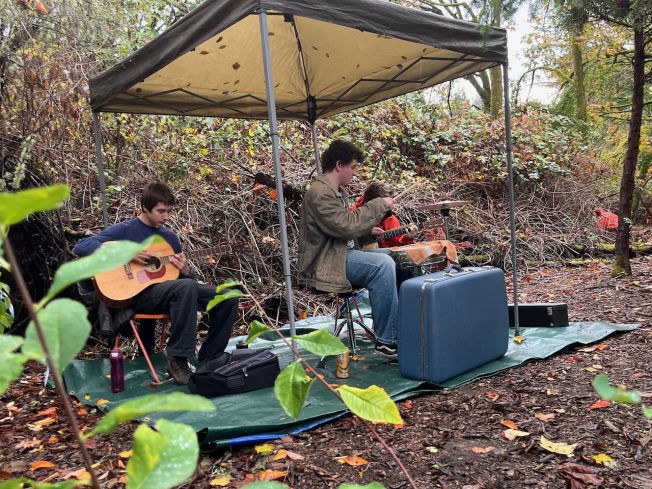 WSHS student band Fleabag played for volunteers as they worked to help restore a forested area in the park.