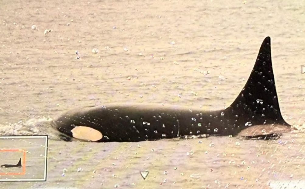 12:33 PM: Should be in view now, weather permitting, as it’s passing the north side of the mouth of Elliott Bay.