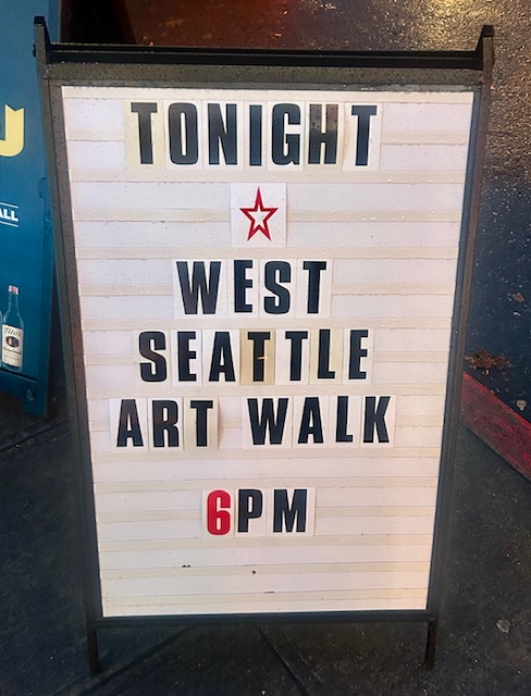 It’s West Seattle Art Walk night – and that’s not all that’s happening for the rest of today/tonight – mostly from the WSB West Seattle Event Calendar (where you’ll find even more for today/tonight/days and weeks ahead):