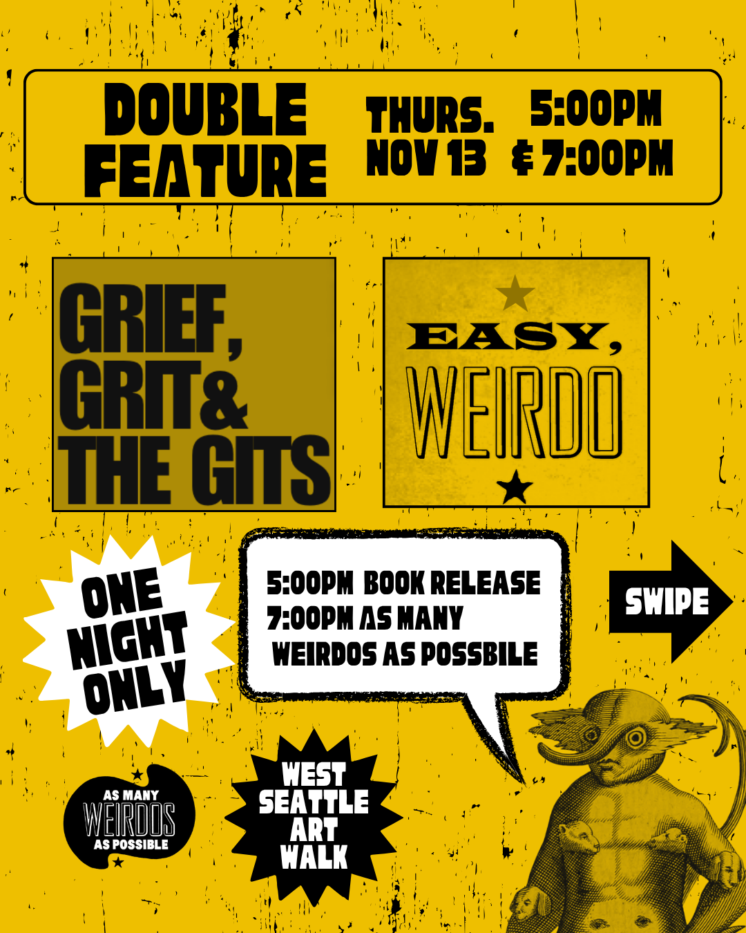 5 PM – GRIEF, GRITS, & THE GITS: Melissa Meszaros, author of Song Over the Bones and Steve Moriarty, author of “Mia Zapata & The Gits” and certified Weirdo, share raw, personal stories that offer two perspectives on the same moment in time. Steve will then read the story he contributed to As Many Weirdos as Possible, a memory that will live on in our upcoming book featuring portraits and stories from the artists, misfits, and scene-shapers who defined the PNW music scene from 1985–1995.