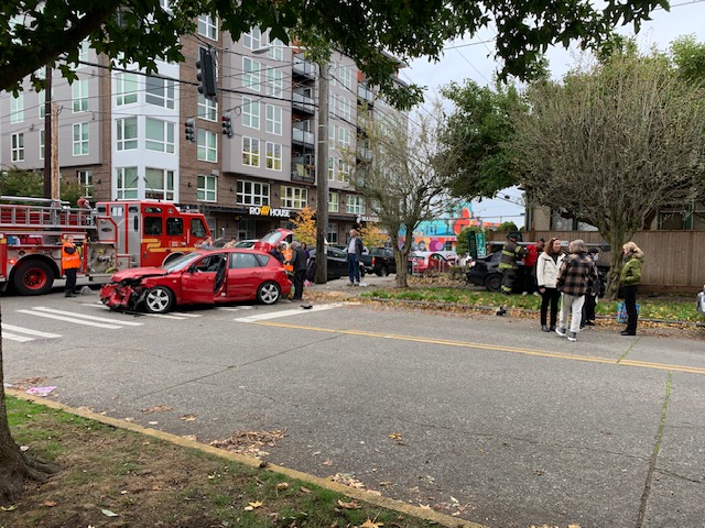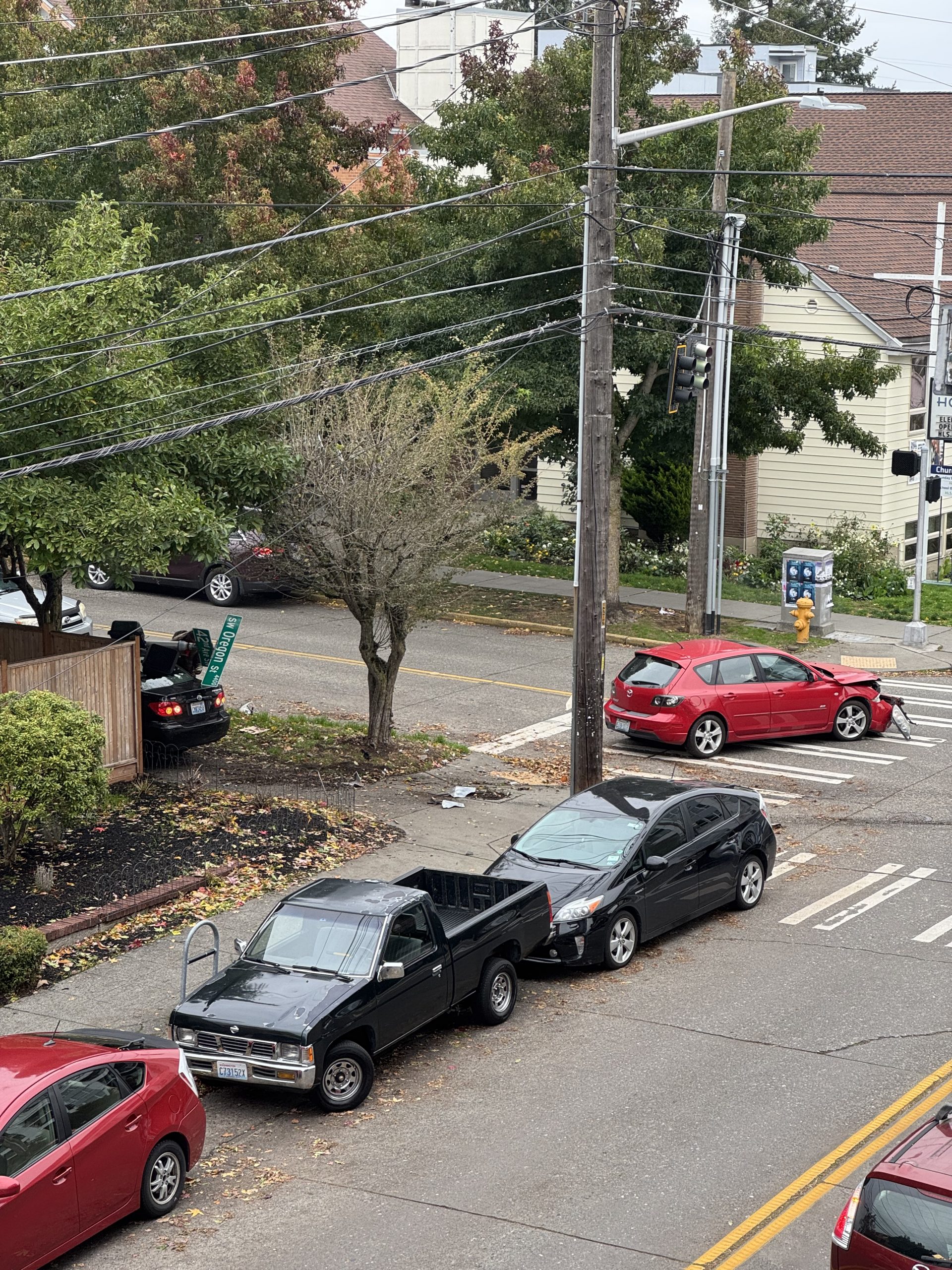 It was a two car collision, driver of the red car was taken with their arm in a sling via ambulance. Took this pic from the apts on that corner.