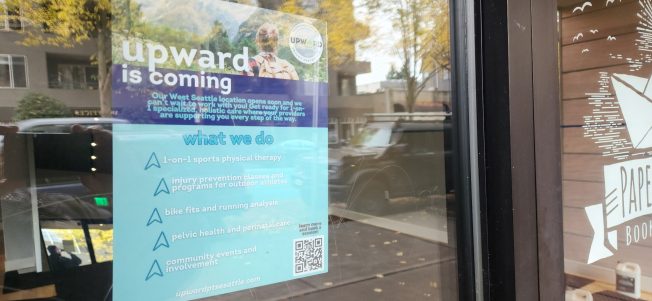 NEW TENANT FOR EX-BOOKSTORE SPACE: Thanks to Mike for the tip. Eight months after Paper Boat Booksellers (WSB sponsor) moved out (now in The Junction at 4522 California SW), a new tenant has uncloaked for 6040 California SW, continuing West Seattle’s newest hot business trend, clinics: