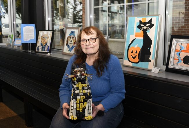 5:49 PM: That’s artist Babs Fulton with some of her whimsical work, on display during tonight’s West Seattle Art Walk, at West Seattle Arcade (2758 Alki SW), where you can meet her until 8 pm. The arcade is at the northernmost end of tonight’s participating venues, which stretch from Alki to Morgan Junction. See the list of tonight’s shows and receptions here; most last until 8 pm. More photos later!