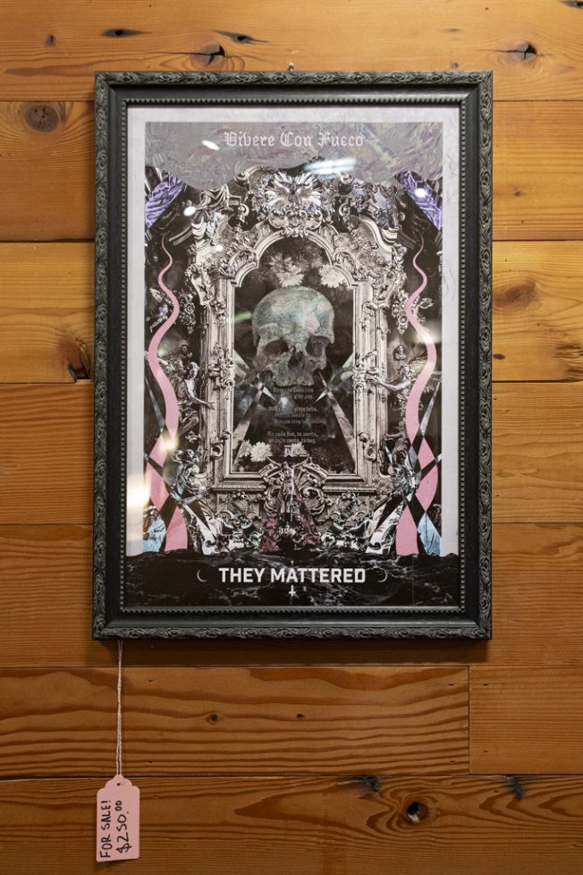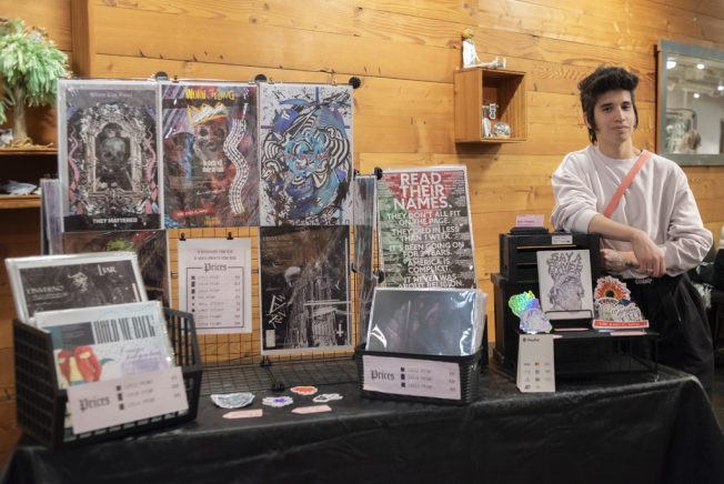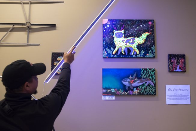 Tyson Foster held an “open studio” at Junction 47, showing how a blacklight transforms his work: