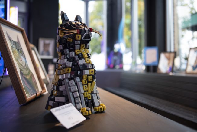 10:50 PM: Adding more photos from Oliver Hamlin for WSB – first,Fulton’s cat sculpture “Catrol-Alt-Delete”: