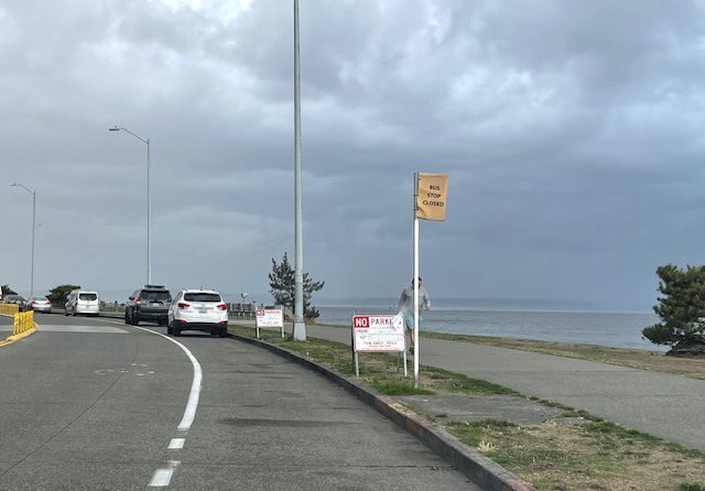 Thanks to Steve Pumphrey for the tip. Those are just a few of the dozens of “no parking” signs lining Harbor and Alki Avenues from Don Armeni Boat Ramp to Anchor/Luna Park (and along the north/west half of Don Armeni, too). The spaces are all reserved for a production company (which shot there last year too), all day Saturday (October 4) and Monday (October 6). As Pumphrey, a nearby resident, points out, that’s going to take a big bite out of parking during a weekend with massive events that will bring extra riders to the Water Taxi (among other users in the area) – Saturday brings the Mariners‘ first game of the American League Division Series and Sounders FC‘s match with Portland. But we looked closely at multiple signs and the restrictions are NOT in effect Sunday, which has another Mariners’ playoff game as well as the Seahawks vs. Tampa Bay, so you should be able to use the parking spots on that day. On Saturday, though, you might be better served using the shuttle buses, riding a bike, or having someone drop you off.