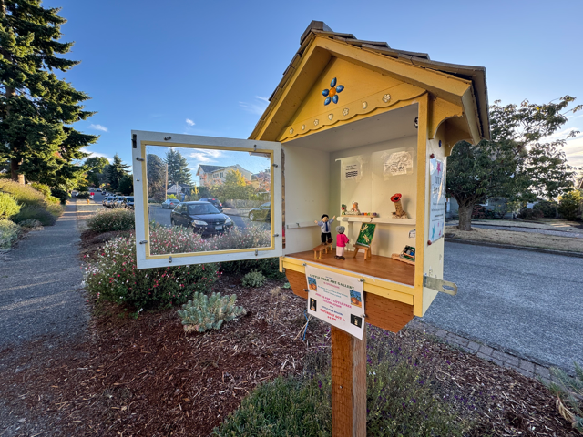 The Little Free Art Gallery is in the Morgan Junction, 38th Avenue SW, between Morgan and Graham.