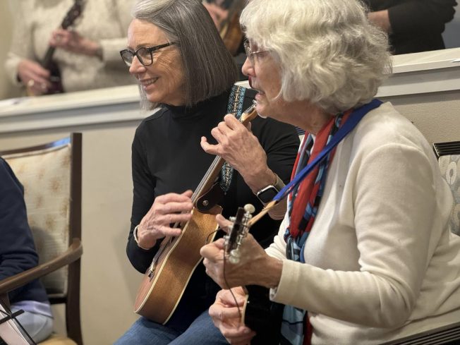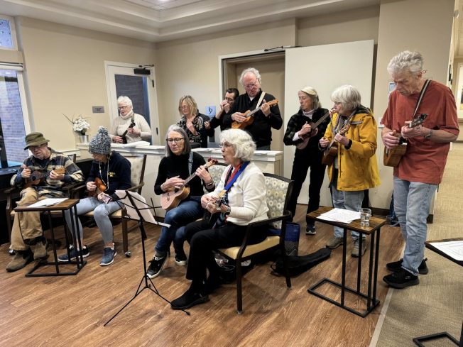 Seattle’s beloved and long-standing ukulele group, The Ukes, has been spreading music and joy for decades, and they have a special monthly tradition that deserves to be celebrated. Each month, The Ukes visit Quail Park of West Seattle, a senior living community, sharing their music and positivity with the residents. With casual membership that ranges from a dozen to two dozen, The Ukes pick songs based on a monthly theme, take song requests and even sing Happy Birthday for residents celebrating.