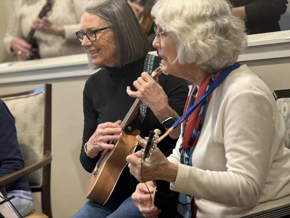 A special part of the group’s monthly visit to Quail Park is their connection with Paula Green, a longtime member who is now a resident at the senior living community. Paula continues to play with The Ukes during their visits, and her presence reminds everyone of the group’s deep community ties. The residents at Quail Park join in the fun, singing along, clapping, and dancing, turning each visit into a joyous and engaging experience for all.