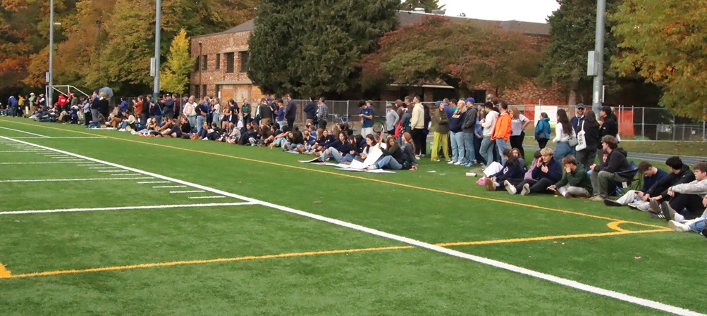 And what a turnout it was, with fans packed into the sideline area east of the field…
