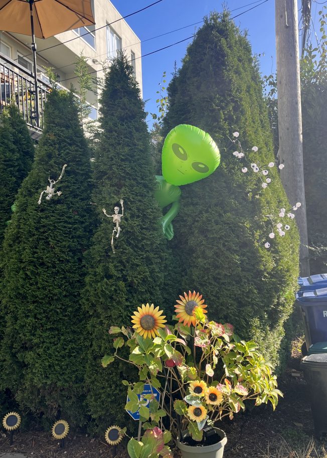 Thanks to Joanna for tonight’s spotlight photo! She sent photos of several displays she’s seen around North Admiral; this one mixes multiple genres of spooky decor. Thanks to everybody who’s already sent photos – Halloween is just a little over three weeks away, so we’re showcasing decorations every night. Send photos of your own display or one(s) you’ve seen – westseattleblog@gmail.com – thank you!