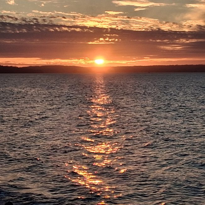 (Before today’s gray, Tuesday color – sunset photo by Bob Burns)