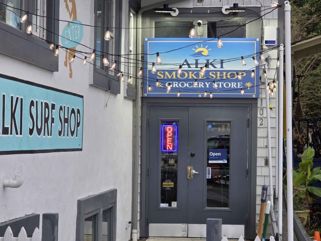 Nestled next to Alki Surf Shop at 2622 Alki Avenue SW, Alki Smoke Shop and Grocery is the beach neighborhood’s newest store. Today marks one week of business, owner Jane told us, saying that she’s incredibly grateful for the community’s response.