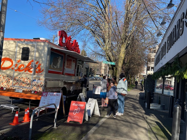Not only is Thunder Road Guitars (6400 California SW; WSB sponsor) having a Black Friday/Small Business Saturday-weekend sale – 20 percent off many items – and giveaway, they also have a reason for you to visit today even if music is not (yet) on your shopping list: What might be Puget Sound’s most-famous food truck is out front until 2 pm today! This year the Dick’s Drive-Ins burger-and-shakes truck is selling to everyone, not just TRG customers. More info about the sale is on the Thunder Road website (where you also can shop if you can’t get to their store).