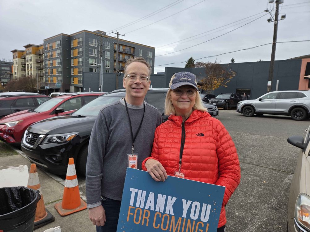 The West Seattle location is stocked with 650 full turkey meals this morning, enough for a family dinner. “The only thing we don’t supply is salt, pepper, and butter,” Mathison joked.