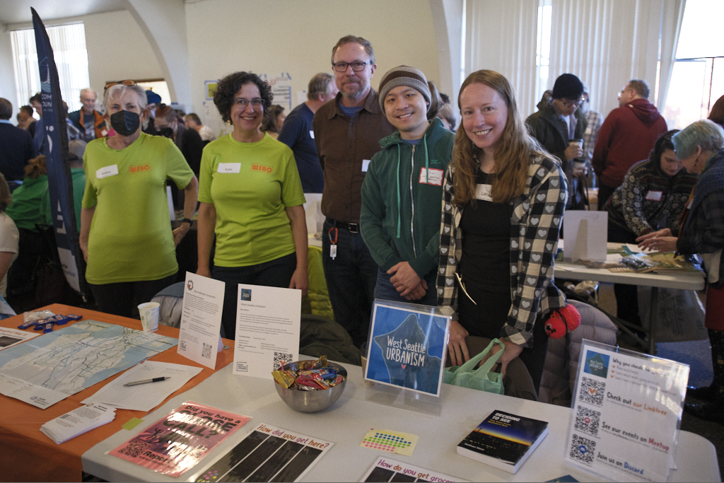 From left below, Kathy Dunn and Kate Wells from West Seattle Bike Connections, and Chun Yu and Lara Gardner from West Seattle Urbanism: