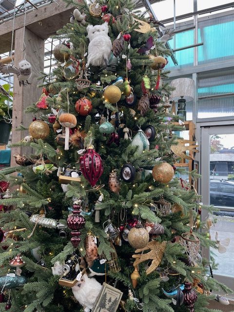 They’ll be there for DIY photos throughout the season. Inside, lots of holiday decor, including ornaments on themed Christmas trees – the “apothecary” tree is new this year, with lots of old-fashioned items: