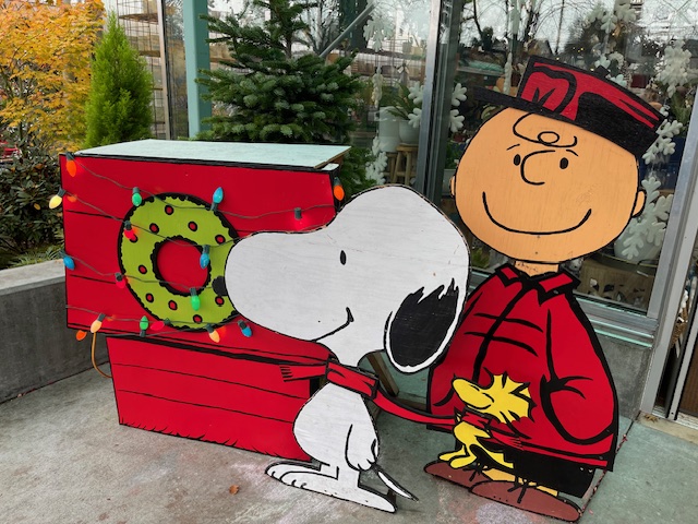 And if you want to take a photo with one of the most famous dogs of all time, check out Snoopy, with his decorated doghouse and Charlie Brown (plus Woodstock!), outside the nursery’s shop: