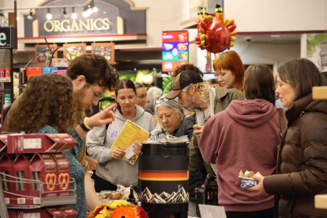 5 PM: Busy night at West Seattle Thriftway (California/Fauntleroy, WSB sponsor) as shoppers sample possibilities for holiday meals, with three weeks to go until Thanksgiving. The “Holiday Taste” is a Thriftway tradition, with more than 20 vendors there offering samples of food and beverages, plus a chance to try what the store’s own deli is cooking up if you want someone else to do the cooking this season. As noted earlier, the store also is matching monetary donation made at its checkstands to the West Seattle Food Bank during the event. More photos later; the “Holiday Taste” continues until 7 pm.