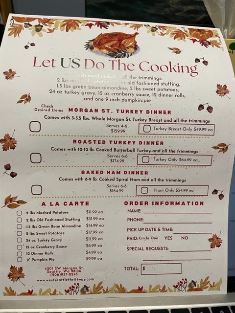 You can get an order form at the store – with items from a $4.99 dozen rolls to a $174 roasted-turkey-and-all-the-fixings dinner: