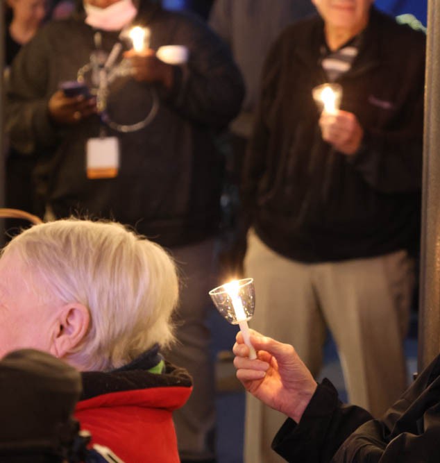 Candlelight illuminated memories of “those who have gone before us” Thursday night at the second annual Providence Mount St. Vincent (WSB sponsor) “Hallelujah Lights.” Those who gathered under a canopy on the southeast side of the campus were serenaded by The Starry Crowns Trio: