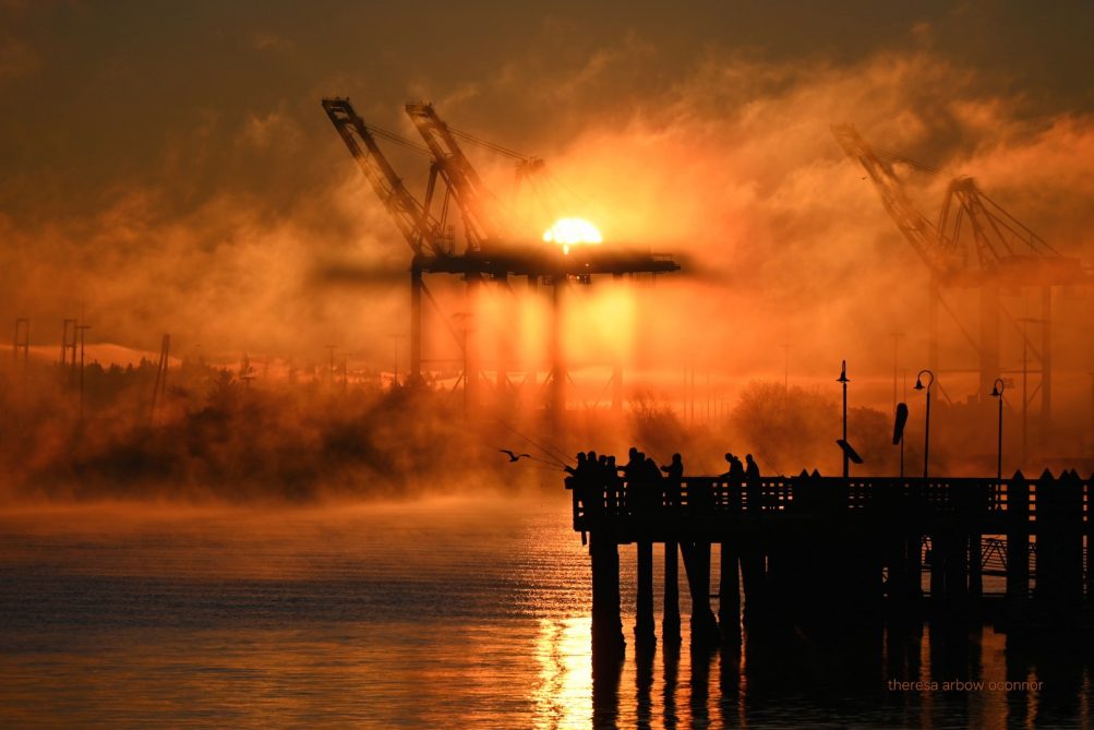 And the sunrise put on a show too, accompanied by fog – Theresa Arbow-O’Connor was there to photograph it: