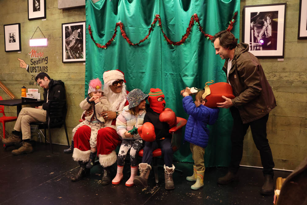 It’s a café, it’s a concert venue … and it’s even a backdrop for Santa photos. Tonight is the jolly occasion when the north side of Easy Street Records‘ space in The Junction hosts photo ops with Cocoa Cris Cringle.