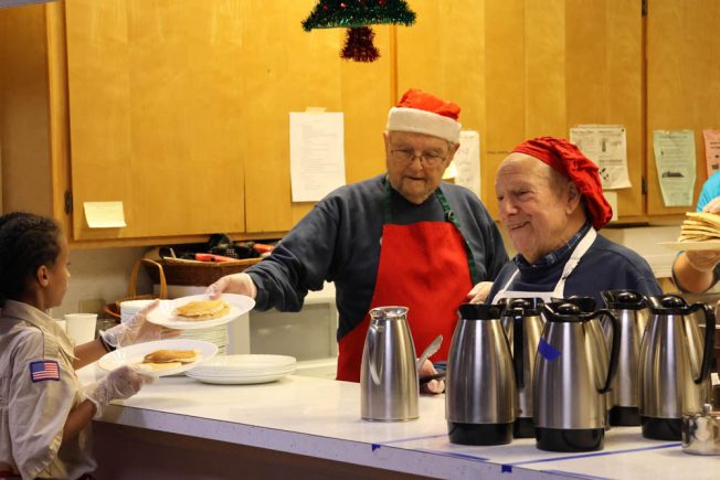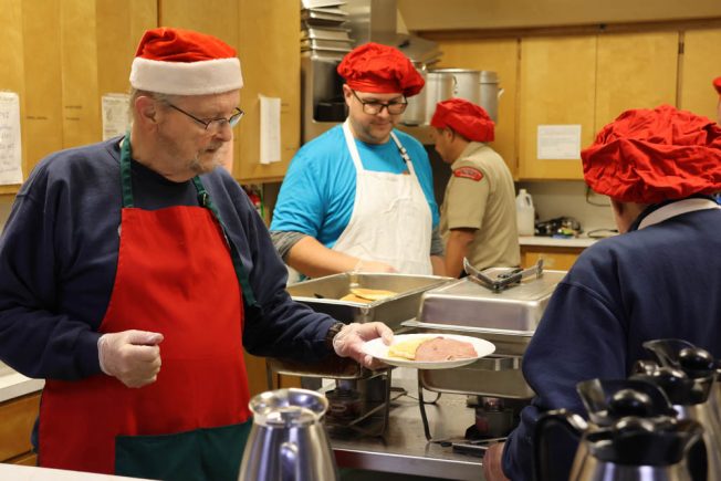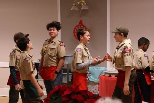 This runs on volunteer power, including Scouts from Troop/Pack 284 who are helping serve: