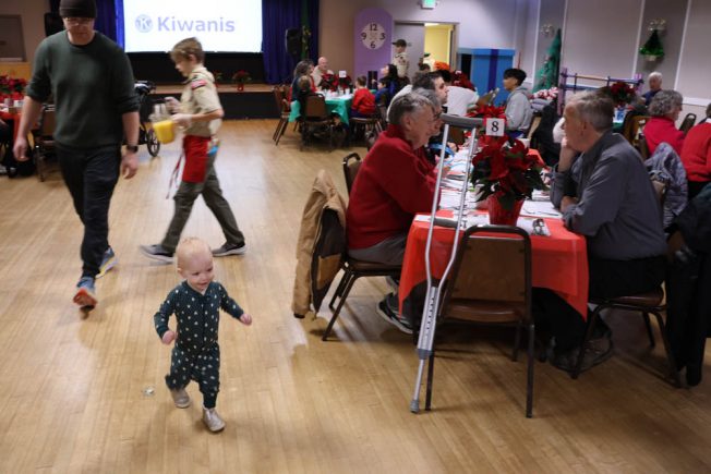8:30 AM: That’s Al‘s plate at the Kiwanis Club of West Seattle‘s benefit pancake breakfast, happening right now at the Alki Masonic Center (40th/Edmunds in The Junction), continuing until 11 am. Only $10 at the door (kids are free with paying adults) gets you pancakes, ham, juice, coffee, tea … free Santa photo, and if you have new unwrapped toys to donate, a Toys for Tots drive too. More photos to come!