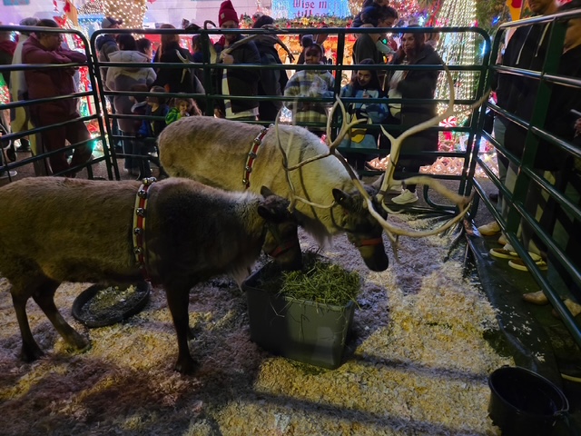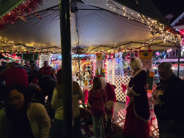 It’s the ultimate Santa photo opportunity – tonight’s the one night every season Santa Claus makes an early visit to the Menashe Family‘s legendary Christmas-lights display, so kids can get those special seasonal photos with him. He brought reindeer too, and Mrs. Claus!