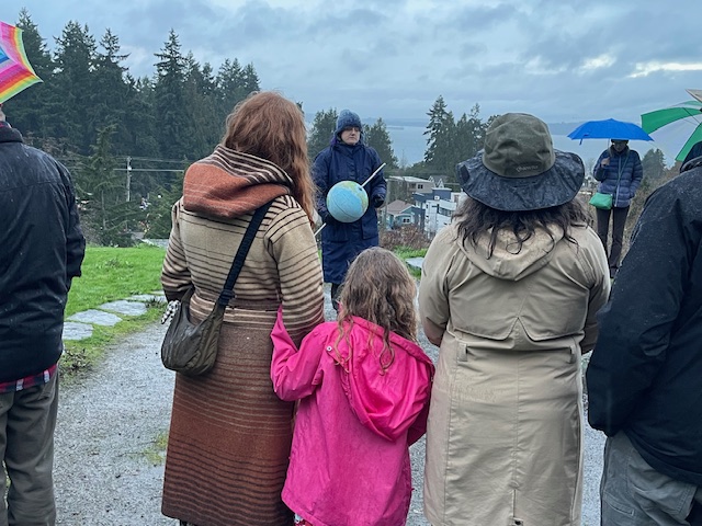 3:50 PM: Winter has arrived with true Seattle wintry weather – rain. Nevertheless, Alice Enevoldsen is at Solstice Park for her quarterly sunset watch, despite the sun being highly unlikely to make even a brief appearance this time. So if you want to commemorate the change of seasons and learn about the solar-system machinations behind it, come on over to the park’s plateau, uphill from the tennis courts at 7400 Fauntleroy Way SW. (The sun sets – out there beyond the clouds somewhere – behind the trees and mountains around 4:05, officially at 4:20 pm.)