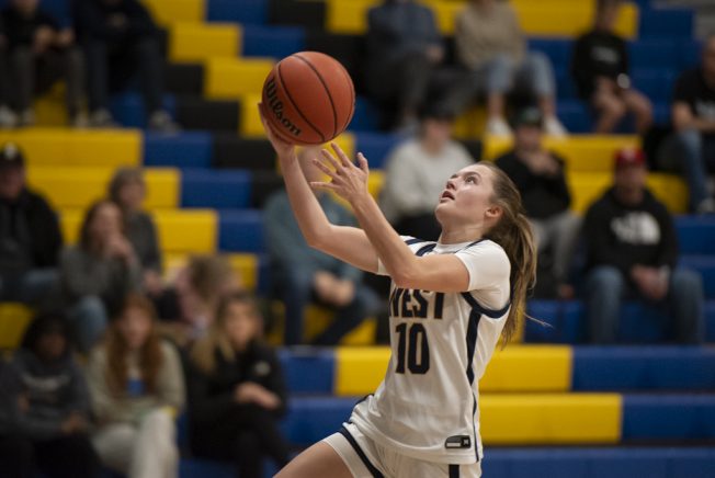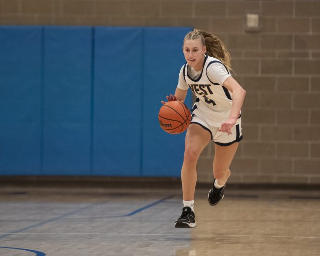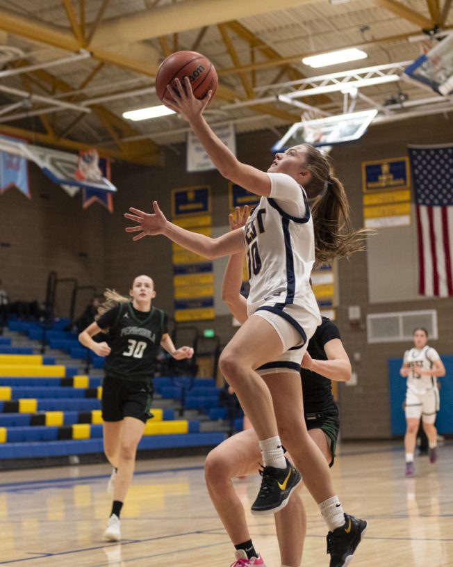 West Seattle High School girls basketball has a young varsity team this year – half freshmen, only one senior – but they’ve won two games by large margins, including this one last night.
