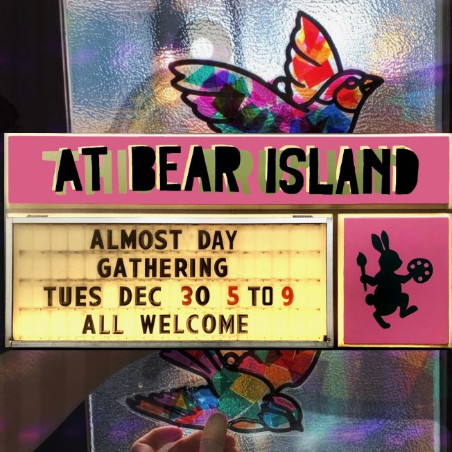 Hosted by Lori KotheBring or make friends! Reflect on what ALMOST happened in 2025. Celebrate being present. Make art, cards & suncatchers. Eat baked potatoes. Come stop by and check out the Bear Island temporary art & community space in the former Admiral Church basement anytime 5-9pm to celebrate Almost Day (Dec 30) with your community. Hang out with old, new, and future friends, make music and art, and enjoy casual, all-ages, unstructed space and time to connect, share, and reflect. Introverts welcome! We’ll provide baked potatoes, toppings, and water (while supplies last). Feel free to bring drinks, snacks, a musical instrument, sketchbook, friends, games, or just yourself! We will also celebrate that local artist and Bear Island building manager Mike Henderson will soon to be walking again as he recovers from a falling accident. RSVP appreciated for planning, but feel free to share and just show up! Free event. All welcome.