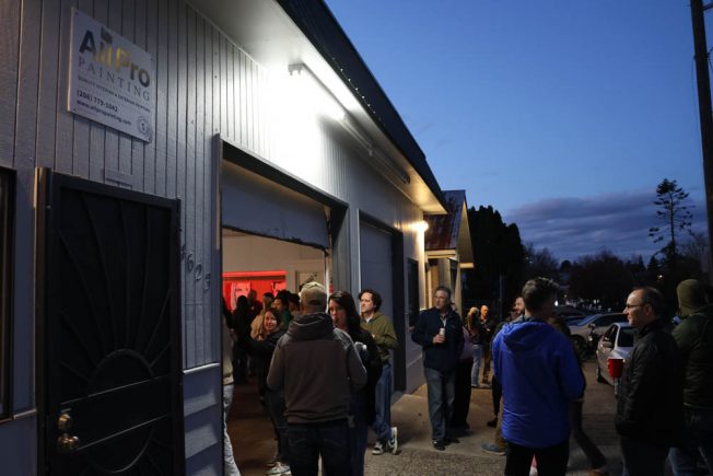Party host was Sean Cummings, proprietor of All-Pro Painting, who noted that he and his friends’ kids are now teenagers and they bring the fire, so to speak. The party started two hours before the wings, which were prepared by Claiborne Bell and team at nearby Distinguished Foods Kitchens. Live music shook the shop courtesy of Ruston Rock – “my mom’s kick-ass cover band,” as Sean explained it.