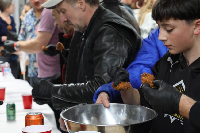 It filled a paint shop in The Triangle with more than 100 people there to dare – they dared to try making it through 10 hot wings, progressing up the heat scale.
