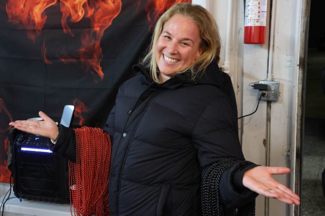 (Even on the sidelines, your correspondent’s nose tickled.) After round #5, someone requested ice cream to calm their mouth, eliciting a round of good-natured boos. For round #6, emcee Steve announced it as “the real deal,” with a habanero-based sauce. But it took up to round #8 before a yelp or two was heard from somewhere in the crowd. “That one escalated quickly,” a wing-eater observed. Fist-bumping and milk-guzzling ensued.