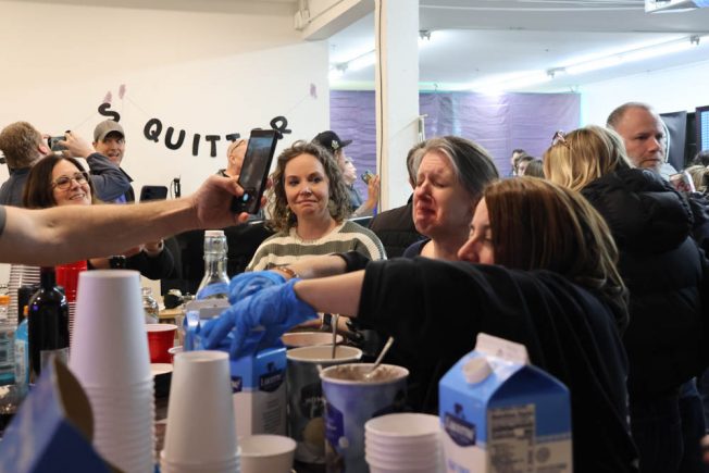 This was not a “last person standing” type of event; we couldn’t stay all the way to the end of the wings, leaving after observing through round 8, but Sean tells us “about 80 percent” of the participants endured them all. He also tells us they ended up with a 150-wing surplus, so those were re-donated, to nearby Westside Neighbors Shelter.