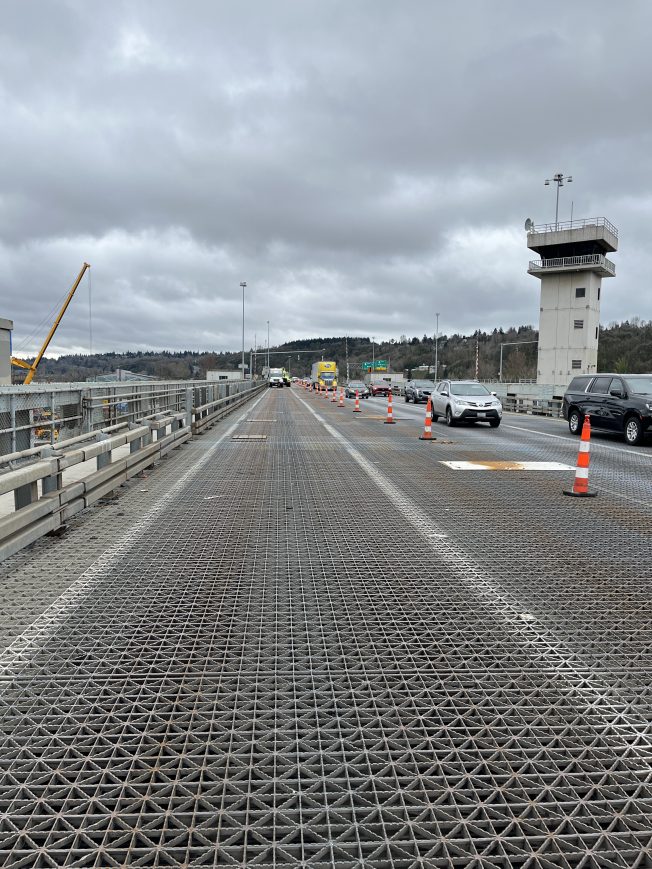 The northbound 1st Avenue South Bridge‘s two right lanes have been closed for more than two weeks, and starting early Monday morning, the entire northbound bridge is scheduled to close for three days. As announced back on Wednesday, this will be the first phase of a three-phase plan to repair cracks in the bridge deck’s steel grates – first repairs, then in April replacement of nine panels, then next year, full bridge-deck replacement. Again, this is all on the northbound side, which is 40 years older than the southbound side. The closure will start at 5 am Monday and is scheduled to end by 8 pm Wednesday; during the closure, people headed toward NB 509 from the Roxbury corridor will be pointed toward S. Cloverdale and eastward to the South Park Bridge. Once this closure’s over, all NB lanes of the bridge will be open, but the temporary 25 mph speed limit will remain in effect until after the April work – no start date for that yet.