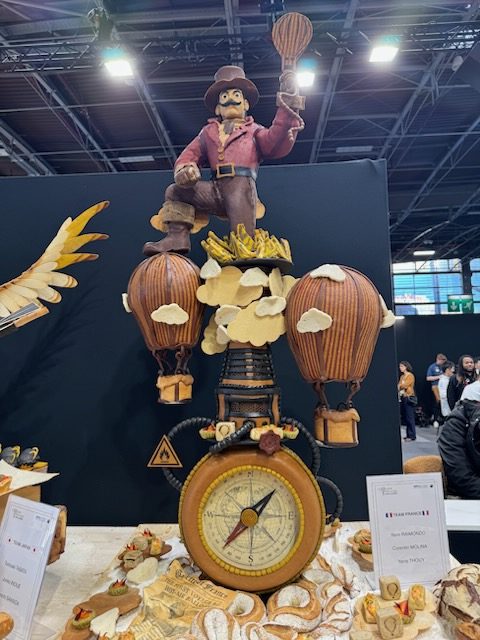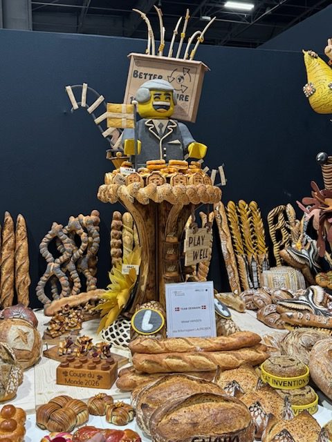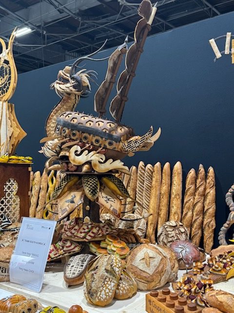 As we reported last week, Leaman’s been juggling running his 3-location bakery business, including the flagship store in West Seattle (4737 California Ave SW), with coaching the 3-person Team USA at bi-weekly practices in Chicago. He was tapped to coach after being part of the winning team in 2005. At this year’s Coupe du Monde, each of the 10 teams had to produce many of the same breads, pastries, and savory “snacks” on the single competition day, plus a unique artistic piece showing an invention from their country, many with elaborate details.