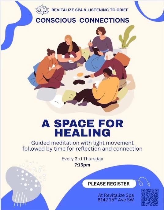 Hosted by Emma of Revitalize Spa and Tamara of Listening to Grief .At Conscious Connections you will find community, conversation, and a welcoming space to share, create, and meditate on subjects that bring us closer to ourselves. Research continues to show how deeply the loneliness epidemic has affected so many of us since the global pandemic. Our hope is to help ease that sense of isolation one heartfelt conversation and meaningful connection at a time.