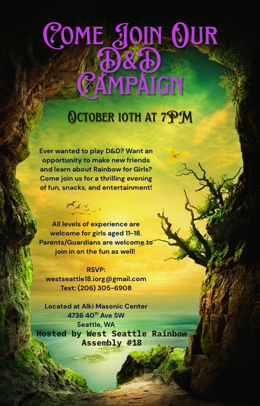 Hosted by West Seattle Assembly #18 Rainbow Girls