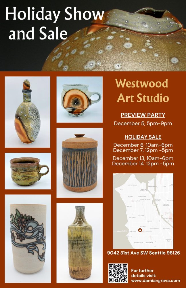 Damian Grava’s Westwood Art Studio (} will once again be hosting a Holiday Ceramics Show and Sale on consecutive weekends, December 5th-7th, and December 13th and 14th.