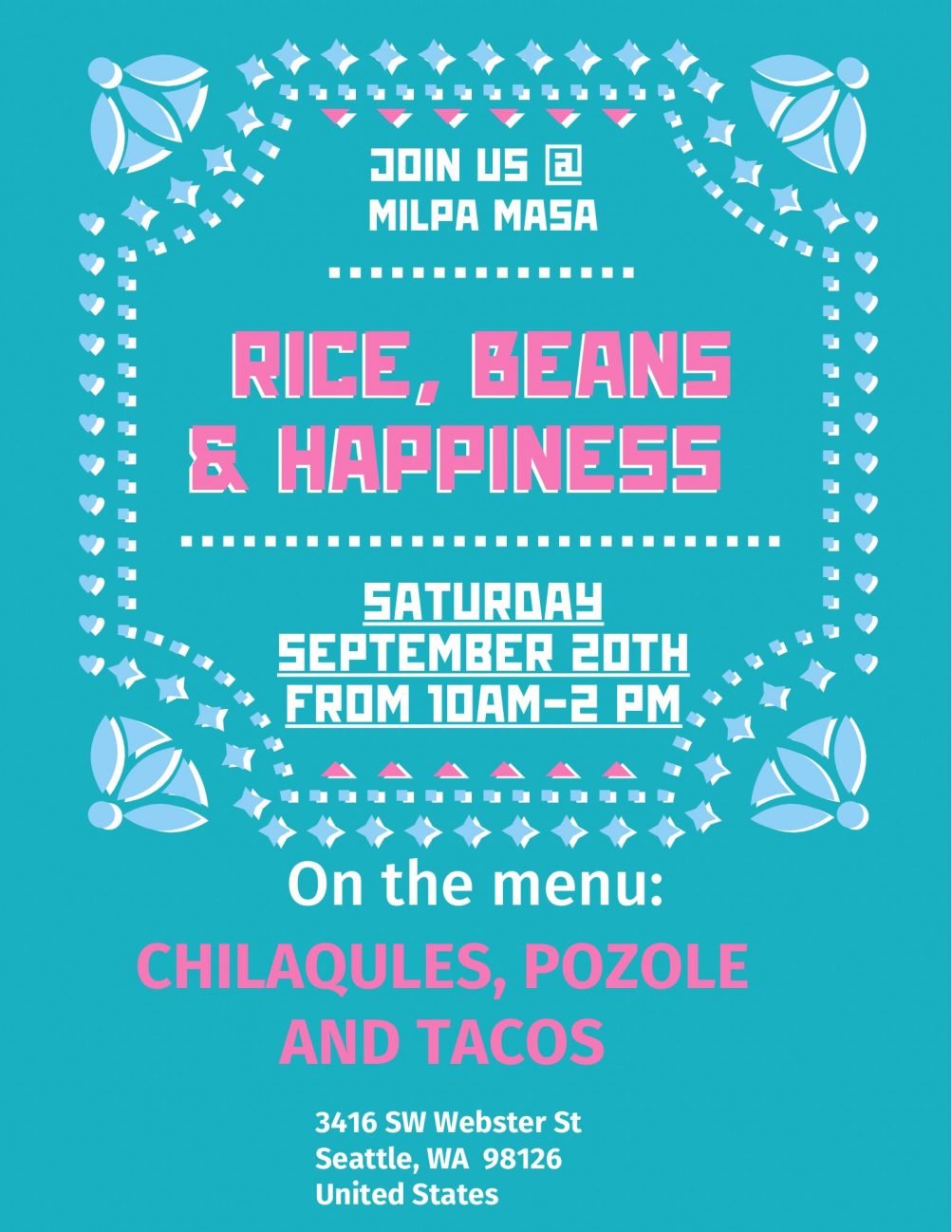 Rice, Beans, & Happiness pop-up at Milpa Masa