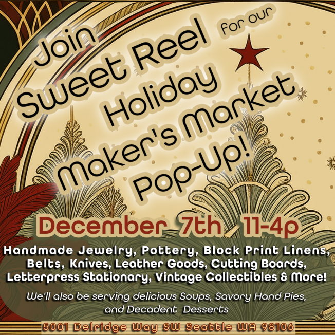 Sweet Reel is hosting it’s 3rd annual Holiday Maker’s Market Pop Up! December 7th – 11-4p