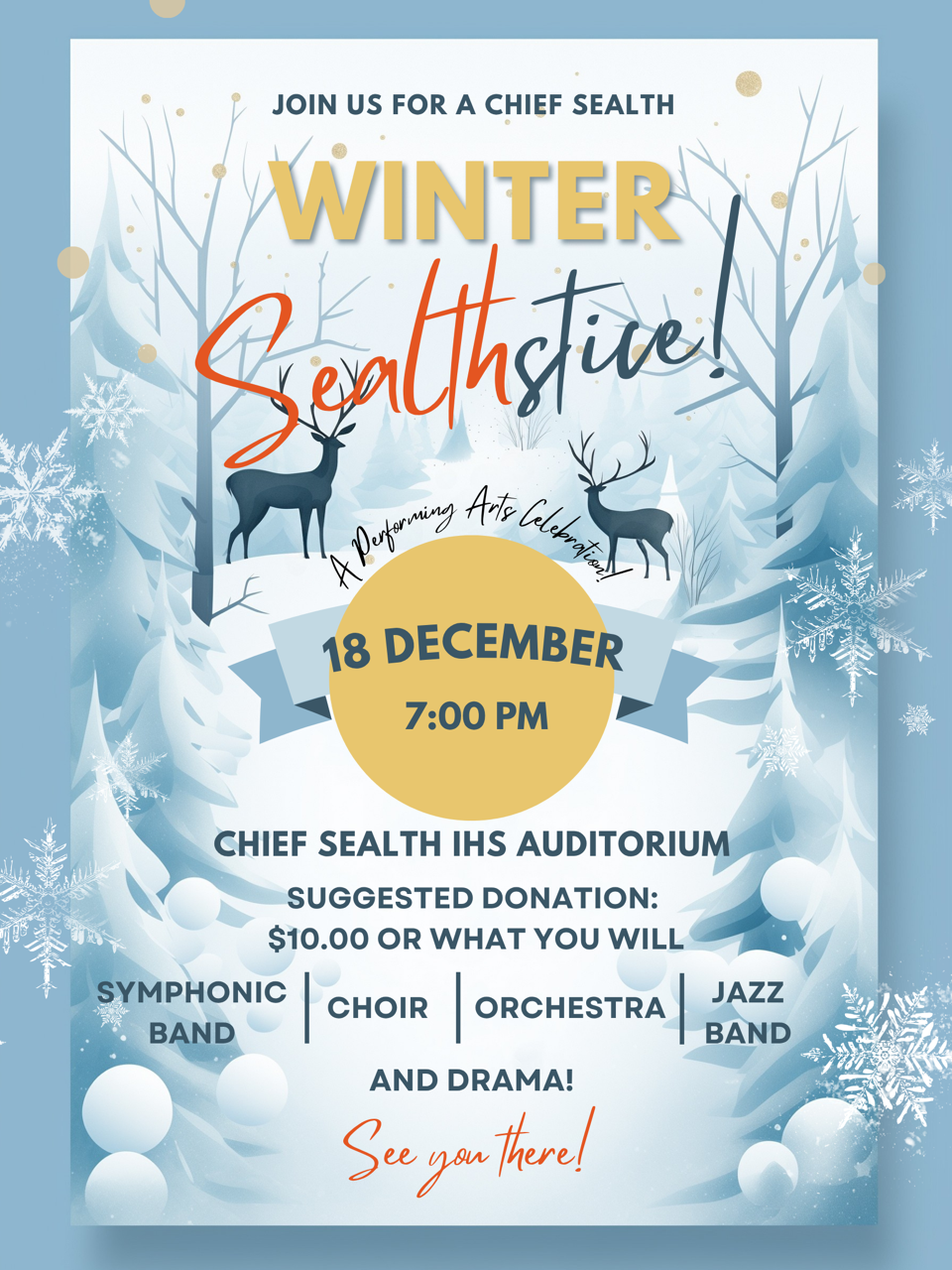 Please join Chief Sealth IHS performing arts for “Winter Sealthstice,” a seasonal celebration of the arts!