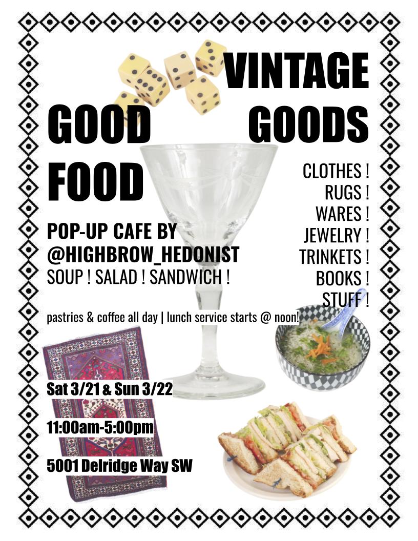 Friday, April 3rd | 2 pm – 5:30 pmSellers Pick Up Unsold Items: