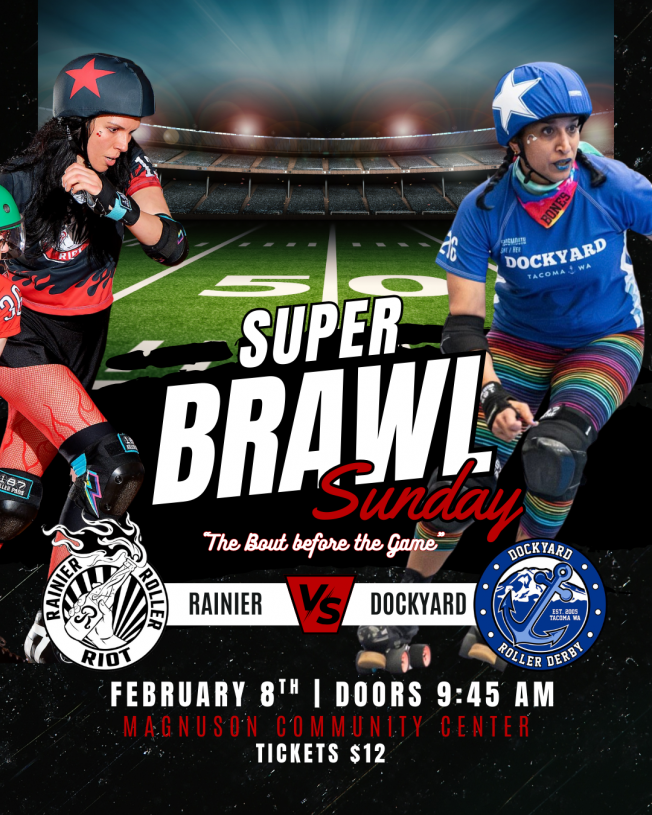 Pregame your Super Bowl Sunday with some hard hitting roller derby action from Rainier Roller Riot and Dockyard’s Undertow!
