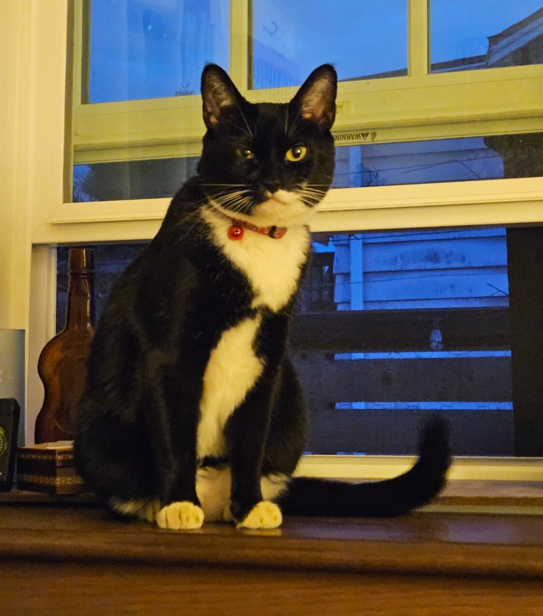 This is Wednesday. She’s missing from Delridge near Pho Aroma (near Findlay). Small tuxedo cat, red collar, skittish. 206-459-7922