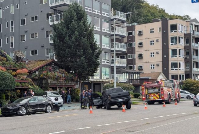 Thanks to Jan for that photo of the scene of a crash involving three vehicles by the Alki Avenue “flower houses” in the 1300 block [vicinity map]. It’s partly blocking the south/east direction.